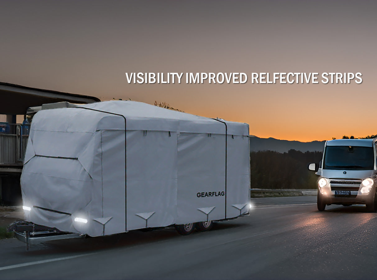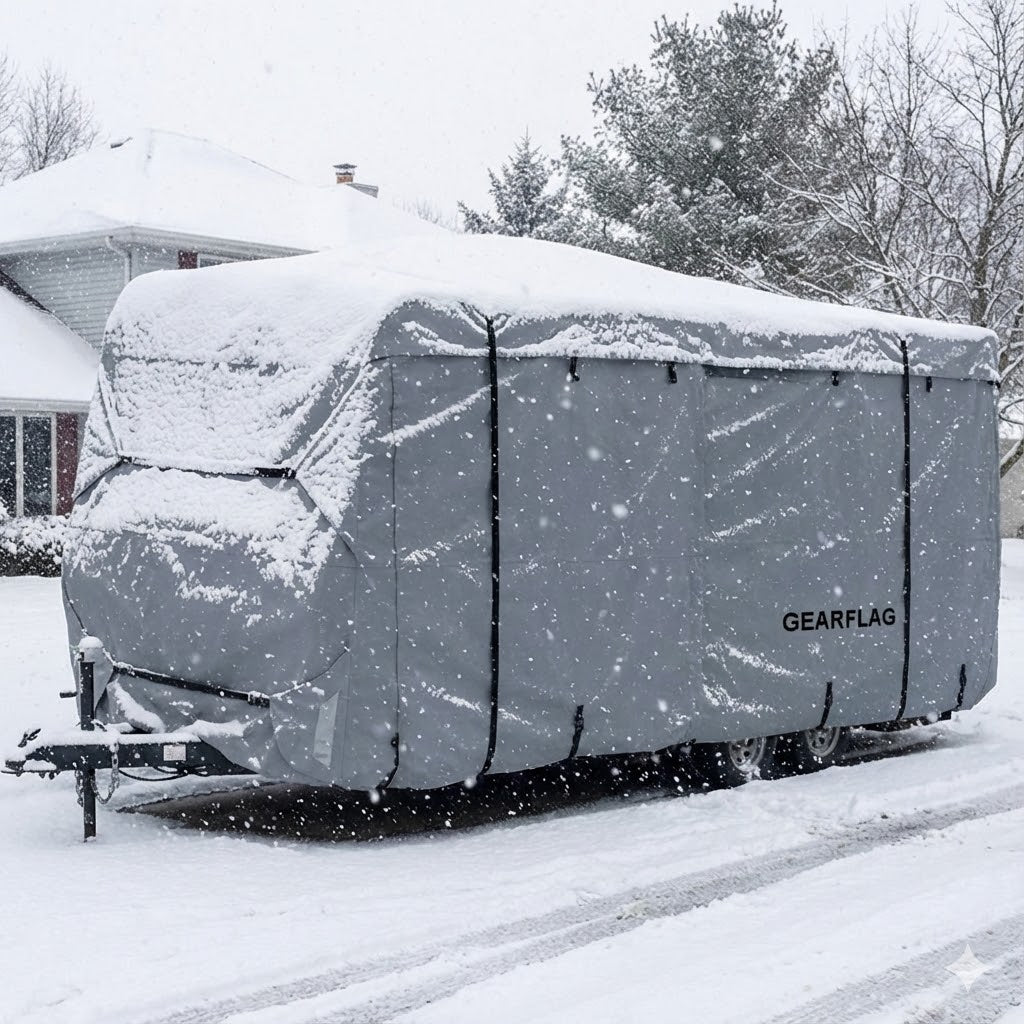 GEARFLAG Travel Trailer RV Cover with reinforced windproof side-straps and roll-up side panels